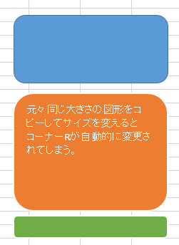 この関数で設定しても再度図形のサイズを変更した場合は、また丸みの大きさが変わってしまうので、図形の大きさが確定してからこの関数を実行すれば良いと思います。